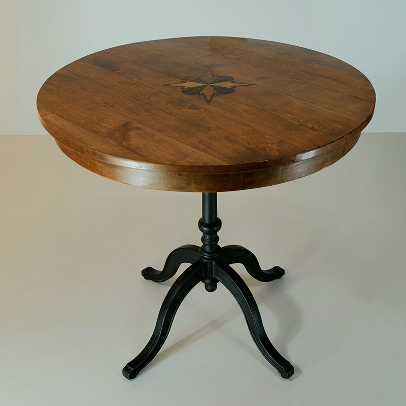 Antiker runder Biedermeier Tisch, mit Stern-Intarsie – VS167