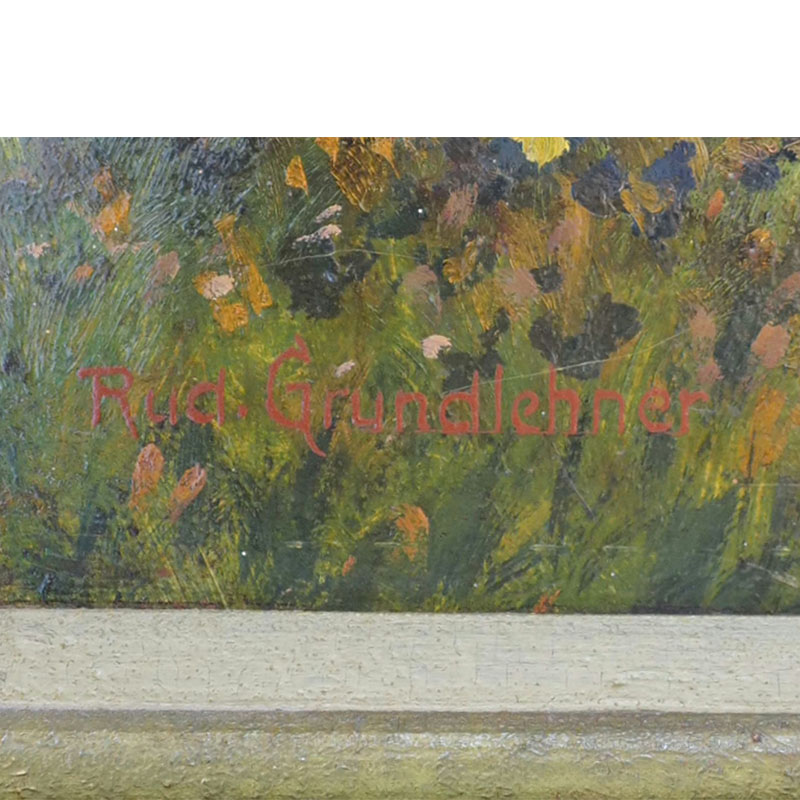 Stimmungsvolles Ölgemälde auf Malkarton, signiert unten rechts Rud. Grundlehner.